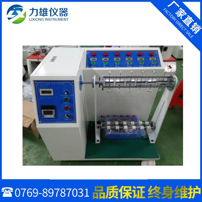 线材弯折摇摆试验机又称线材弯折试验机,摇摆试验机的简称。本试验机符合UL817等有关标准“软线组件和电源软线通用安全要求”的规定。适用于有关生产厂家和质检部门对电源线、DC线进行弯曲试验。本机可以测试插头引线及电线耐折强度,是将试品固定于夹具后施重,经弯曲到预定次数后,检测其断线率,或无法通电时机台自动停机,检视其总计弯曲次数。
