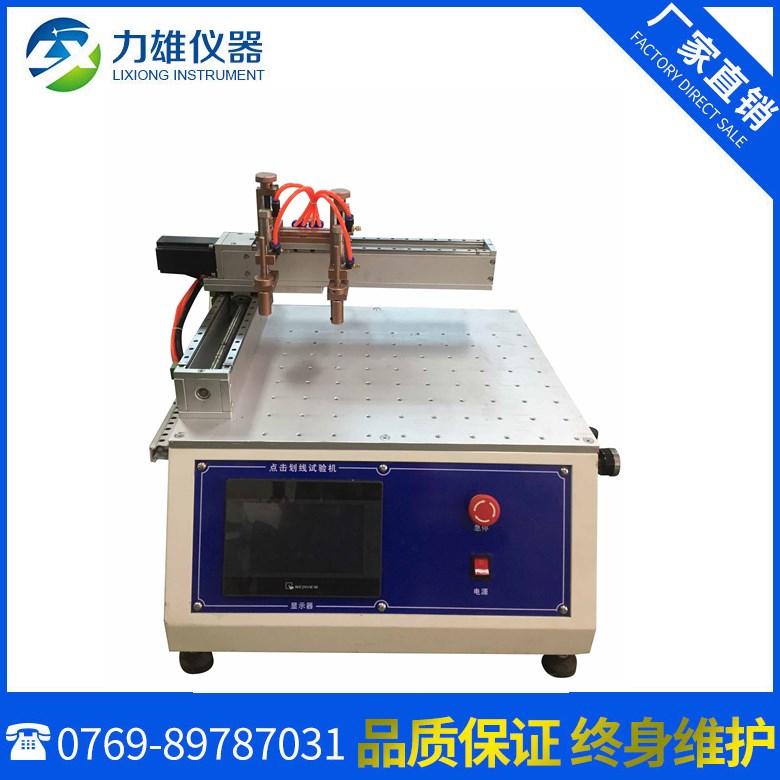 本机主用于手机触摸屏点击、划线寿命测试,PLC 控制 ,触摸屏显示,具备次数自动记忆,掉电记忆,点击力量压力控制,寿命次数累计,达到所设定次数自动停机等功能。采用运动轨迹测试,方便的坐标找点功能,只需于手机液晶显示屏上任取两点可划线,任取三点可生成三角,四点可生成方形或矩形式等运动轨迹,并可根据测试手机规格存取运动轨迹便于下次调用。而且采用步进电机搭配直线导轨和滚珠丝杆作运动机构,定位准、精度高,噪音低;精久耐用等特点.